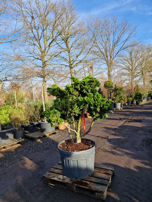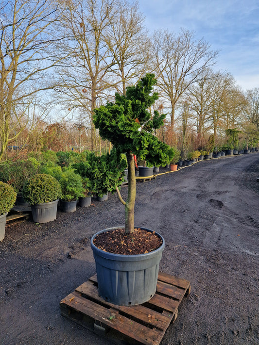 Dwergcypres Chamaecyparis obtusa Nana Gracilis op stam bonsai vorm